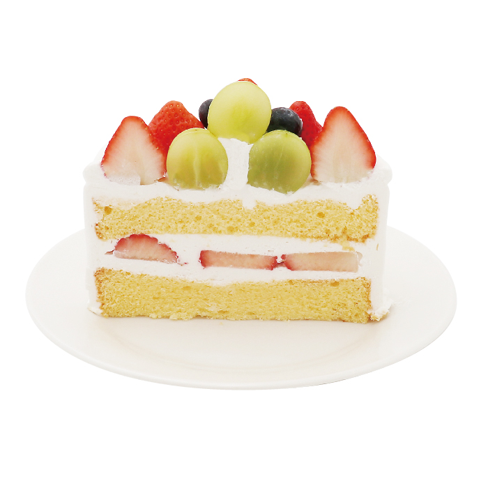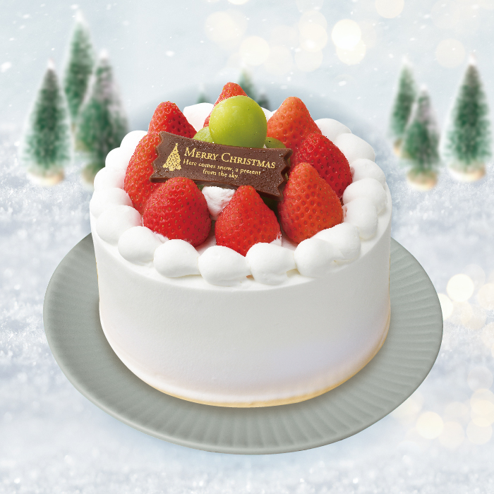 信州駒ヶ根市のいちごと、中野市のシャインマスカットを使ったクリスマスケーキです。クリームは独自の配合によりフルーツが際立つよう白色を重視しています。