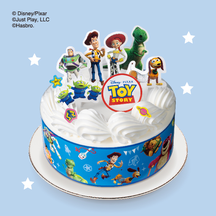 「トイ・ストーリー」のキャラクターピックを自由に飾って楽しめるケーキです。キャラクターがデザインされた保冷バッグが1枚付属します。