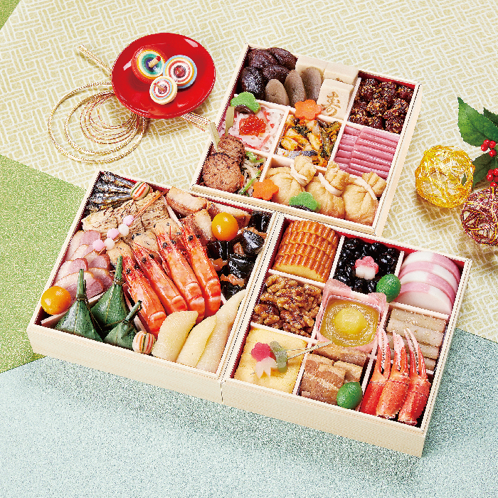 お正月には欠かせない、さまざまなお料理を彩りよく盛り合わせたお重です。