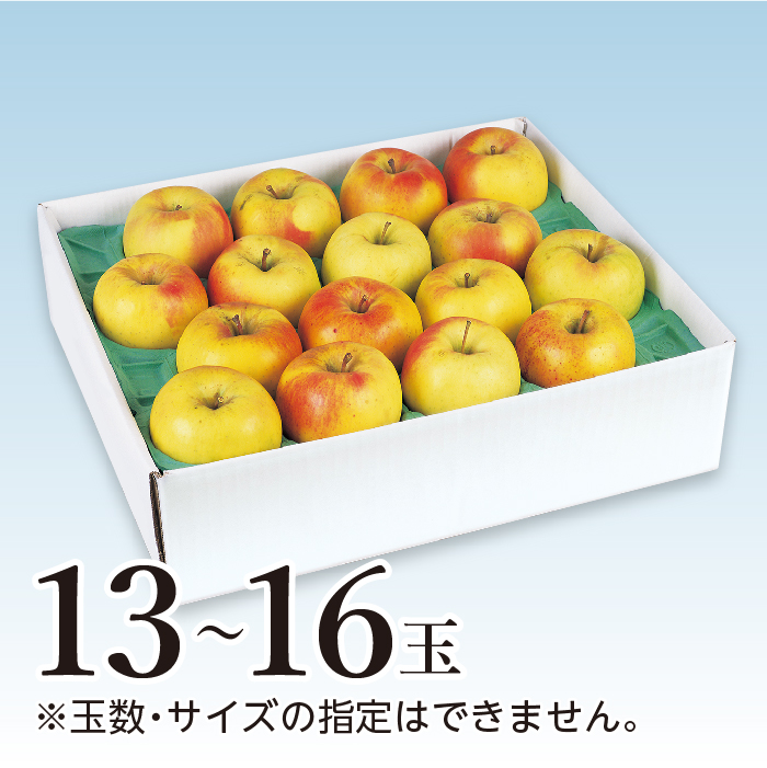 あかぎとふじの交配種で、黄色の品種ですが陽があたった部分はほんのり赤く色づき果汁たっぷりで程よい酸味・甘味の強いりんご