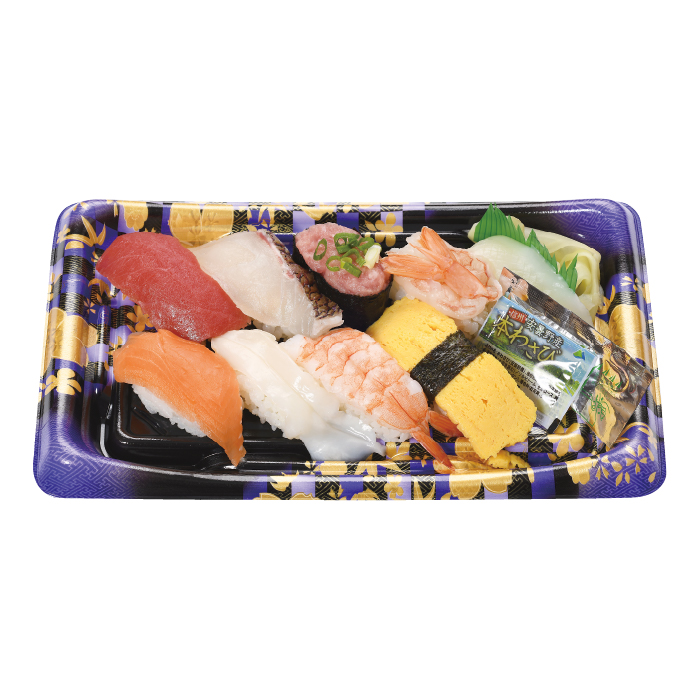店内のつくりたての味を特別な日にご利用くださいませ。 ※画像はイメージです(内容が一部異なる場合がございます) 【内容一覧】 9貫1パック 鮮真鯛、本まぐろ赤身、まぐろたたき、生赤えび、寿司えび、サーモン、松いか、玉子焼き、つぶ貝
