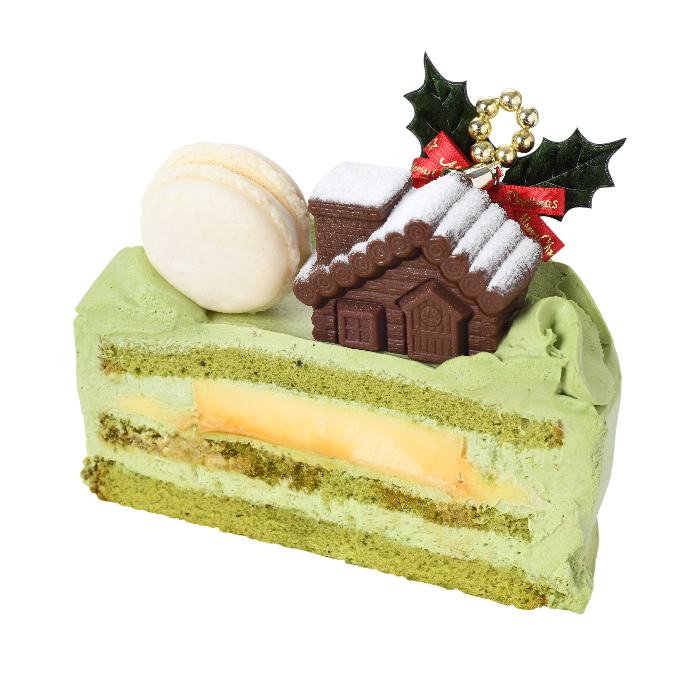 西尾抹茶と宇治抹茶を贅沢に使用したスポンジに芋プリンをサンドして、クリームにも西尾抹茶と宇治抹茶を贅沢に使用しました。
