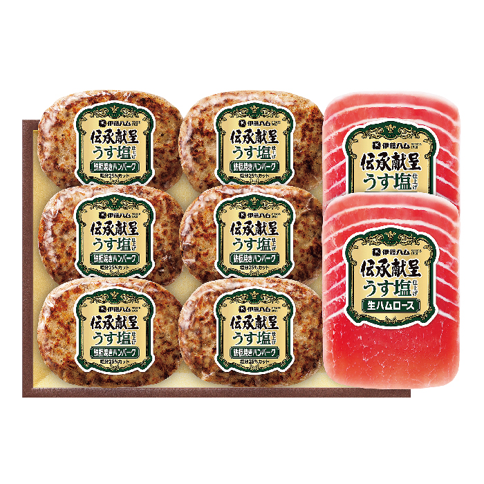 SU-38伝承献呈うす塩仕上げ鉄板焼きハンバーグ・生ハムセット